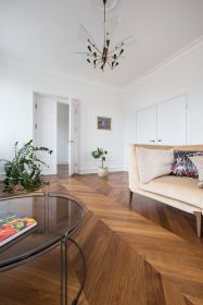 Luonnollinen chevron parketti on täydellinen tasapaino ranskalaisen eleganssin ja tammen aidon lämmön välillä. Tämä on lattia joka on sekä hienostunut että kotoisa, sekä klassinen että moderni, sekä näyttävä että neutraali. Frevini Studio luonnollinen chevron tammiparketti luo tilaan saumatonta V-muotoista geometriaa, joka ohjaa katsetta ja tuo dynamiikkaa ilman että tila muuttuu levottomaksi. Kultaisen ruskea tammi rauhoittaa, chevron-ladonta virkistää. Luonnollinen tammi chevron parketti sopii kaikkiin sisustustyyleihin klassisesta loftiin, ja se on käytännöllinen perheeseen: kätkee jäljet, ikääntyy kauniisti, helppo ylläpito. 2-kerros tammiparketti, lattialämmitysyhteensopiva, 15v takuu. Pyydä ilmaiset näytepalat kotiin ja koe miten ranskalainen V-parketti muuttaa kotisi. Ajaton eleganssi joka palvelee sukupolvia.